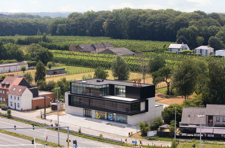 Mimolux is a rooftop venue with a rooftop bar located in Zottegem at the 't Vosken intersection and is ideal for seminars and training courses. The space is also regularly used for small parties or workshops/training sessions, which can be combined with an exclusive bar and foyer. Parking is available at the front or rear of the building; there are 24 spaces above ground. There are 14 underground parking spaces, which must be reserved in advance. There are two large terraces for outdoor seating when the weather permits.