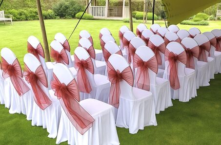 Our stretch chair covers are specially selected to make things as easy as possible for you: they're wrinkle-resistant, fit almost any chair, and have an elegant skirt that instantly adds a touch of class to the venue. Plus, they install in seconds, without the hassle of legs or complicated attachments. You don't have to worry about anything afterward either. Professional cleaning is included in the price, so you can enjoy your party completely worry-free.