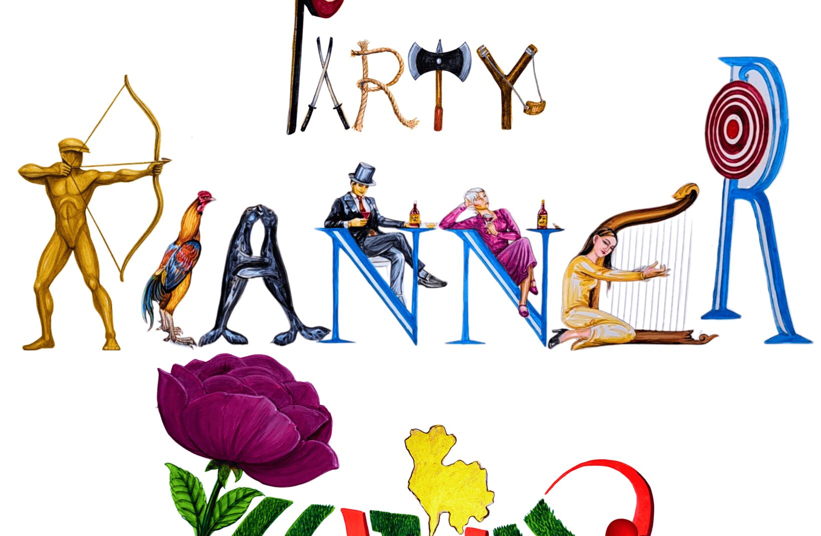 Each design is created in-house by Siam Planner artists — not AI-generated, not stock — but 100% human-made calligraphy alphabet art. These artworks spell meaningful words such as LOVE, VIP, PARTY, WEDDING, TEAM, and BANGKOK through visual storytelling — using objects, animals, and cultural motifs as the letters themselves.