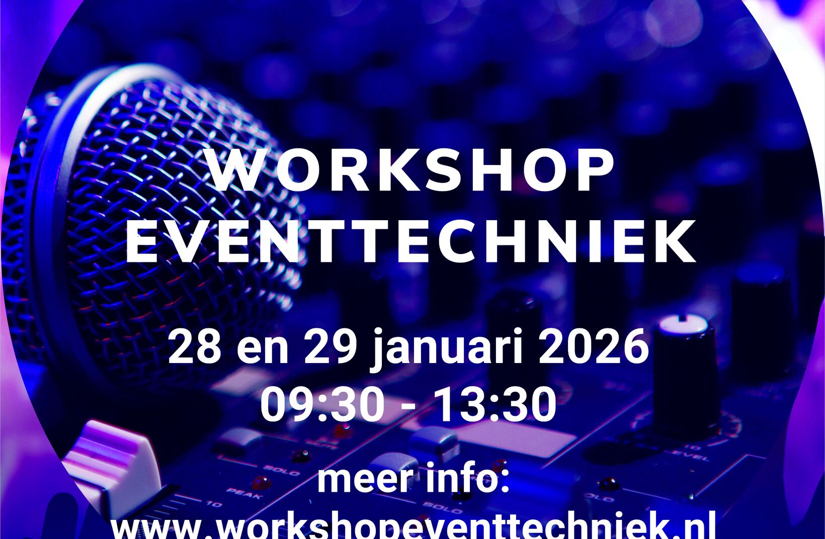 Visit www.workshopeventtechniek.nl for more information and tickets. (Maximum 12 participants per day!)