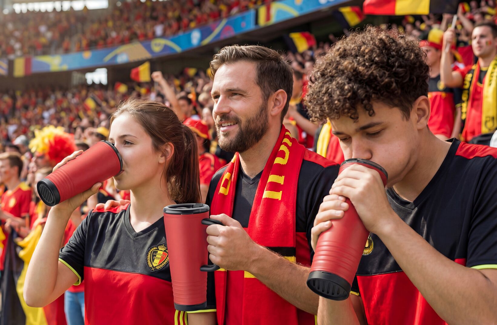 In het deksel zit een geïntegreerde toeter waarmee fans hun team actief kunnen aanmoedigen. Geen aparte accessoires nodig, alles zit verwerkt in één slimme oplossing. Dat maakt deze beker ideaal voor wedstrijden, public viewings en merkactivaties.